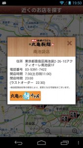 アプリを起動すると、さっそく美味しそうな匂いが漂ってきそうなトップ画面が表示される。「近くのお店を探す」をタップすると、最寄りの丸亀製麺を地図上に表示してくれる。店のアイコンをタップすれば、その店舗の住所や電話番号、ラストオーダーの時間など、詳細な情報も閲覧可能だ。