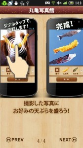 さらに「丸亀写真館」のコーナーでは、自分が撮影した写真に、天ぷらのイラストを貼り付けてデコる機能を搭載。デコッた天ぷら画像は、クルクルと回転させて楽しめるようになっている。